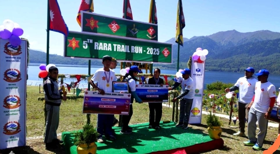 मुगुको रमणीय रारातालको काखमा आयोजित पाँचौँ रारा ट्रेल रनले कर्णालीको खेल पर्यटन र प्राकृतिक सौन्दर्यलाई विश्वमाझ चिनाउने अवसर प्रदान गरेको छ। नेपाली सेनाको आयोजनामा शुक्रबार सम्पन्न यो प्रतियोगितामा जुम्लाका युवक राज बुढा र सुनमाया बुढाले शानदार प्रदर्शन गर्दै पुरुष र महिला विधाको उपाधि जितेका छन्।